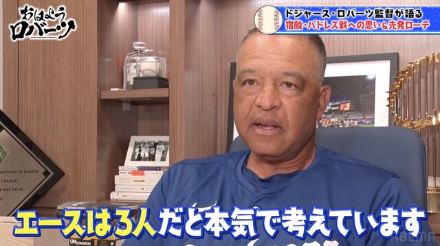 インタビューはドジャースタジアム内の監督室で行われ、山本由伸投手の強みや捕手との相性、宿敵サンディエゴ・パドレスへの攻略法、さらには理想の先発ローテーションについて語られた。