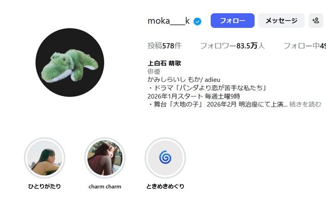 萌歌は「姉上の『千と千尋の神隠し』韓国公演をみに、弾丸で韓国へ行ってきました」と、萌音が出演する舞台を韓国まで観に行ったことを報告。「海をこえてあらゆる国をめぐり、各地の熱をめいいっぱい吸い込んだ千尋は、すさまじいパワーを放っていました。とんでもなく千尋で、10歳でしかなくて、さらに血の通ったものになっていて震えた」「こんなにも夢中になれる作品に出逢わせてくれた姉に感謝です」と観劇の感想を熱くつづった。