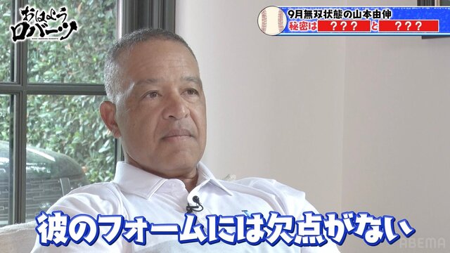 9月に月間防御率0.86と圧巻の数字を残す山本由伸については、「投げる時は必ず好投して、エースとして勝たなきゃいけないことを理解している」と責任感と安定感を称賛。技術面では「彼のフォームには欠点がない。彼は決して大きくないけど」と前置きしつつ、「すべての球種が同じ投球フォームから投げられる。彼が投げる球はフォーシーム・ツーシーム・スプリット・カーブ全部同じに見える。だから多くの打者が空振りする」と“奪三振の理由”を分析した。