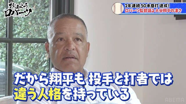 「ABEMA(アベマ)」は29日、独占インタビュー企画『おはようロバーツ』を放送。ロバーツ監督の自宅で行われた今回のインタビューでは、2年連続50本塁打を達成した大谷選手のすごさから、ポストシーズンの戦略、難敵フィラデルフィア・フィリーズの攻略法に至るまで、本音が次々と飛び出した。