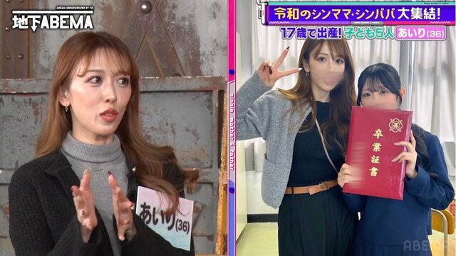 #105は「波瀾万丈!シンママ&シンパパ大集合!壮絶な過去&リアルな今を激白SP」と題し、5名のシングルファザー、シングルマザーが登場。中でも注目を集めたのが、昨年、当時17歳で出産した長女の高校卒業に関するSNS投稿が、驚異の5,660万インプレッションを記録したあいりさんである。
