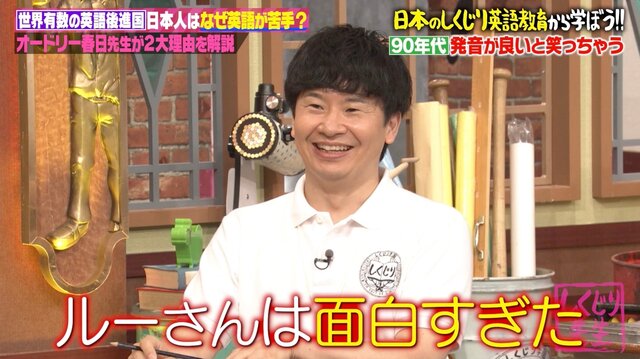 もう一つの理由として春日が挙げたのは「90年代のテレビ番組」に潜んだ“笑いの空気”だった。「英語の発音が良いとなんか笑っちゃう」という文化が、英語を真面目に話すことへの抵抗感につながったと分析。具体例として“ルー語”で人気を博したタレント・ルー大柴を挙げると、生徒たちからは「ルーさんは面白すぎた」「ルーさんはギャグにしてる」との声が上がったが、春日先生は「我々も笑ってはいけなかった」と返し、スタジオは爆笑となった。